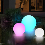 Ein absolutes Highlight sind die facettenreichen und unkomplizierten LED Gartenleuchten. Ob als Kugel, Zylinder oder in Zypressenform – die aufladbaren, kabellosen Kunststoff-Leuchten setzen jedes Ambiente stilvoll in Szene. Die stufenlos dimmbaren Lichtobjekte leuchten, einmal aufgeladen, bis zu 10 Stunden. Mit Hilfe eines integrierten Farbwechselsequenzers lässt sich damit jeder Garten in den unterschiedlichsten Lichtfarben illuminieren: von Gelb und Orange über Grün- und Blautöne bis hin zu Violett oder Rosé. Wer sich nicht für eine Farbe entscheiden möchte, kann sogar mittels vorprogrammierter Programmabläufe verschiedene Farbwechsel wählen.