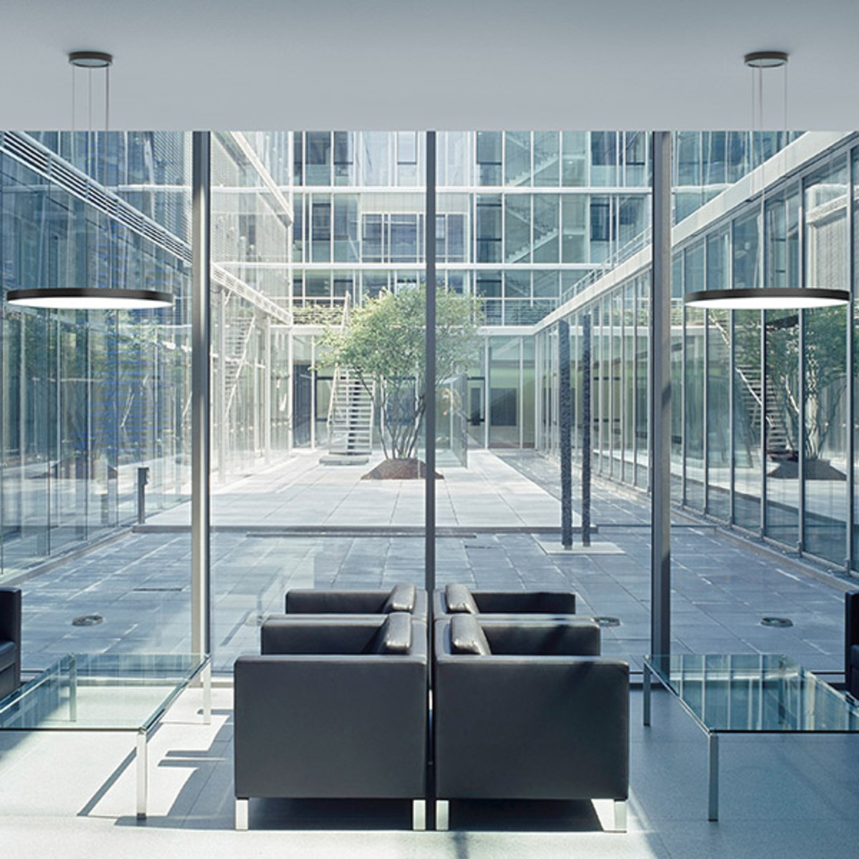 Darüber hinaus spendet TRIONA per se enorm homogenes, blendfreies, kraftvolles und doch weiches Licht. Verantwortlich dafür ist die RZB SIDELITE®-Technologie, die den Leuchtenkörper mittels seitlicher Lichteinkopplung speist und randlos ausleuchtet. Innerhalb der Serie sind Ausführungen verfügbar, die zusätzlich indirektes Licht über die Leuchten-Oberseite abgeben - für optisch und gestalterisch beeindruckende Effekte. Die ansehnliche Oberseite der Leuchte kommt übrigens trotz der zusätzlichen Lichtaustrittsbereiche ohne nennenswerte Kanten oder Vertiefungen und ohne sichtbare Schrauben aus und lässt sich daher leicht und schnell reinigen.